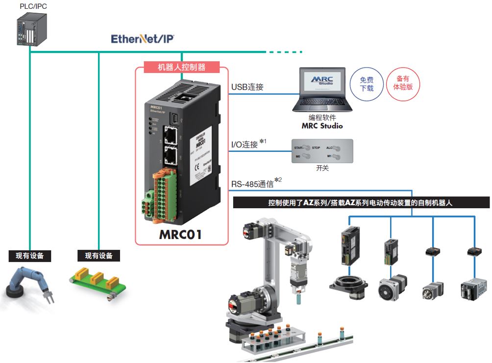 通过EtherNet/IP™直接控制MRC01与上一级系统的协作。