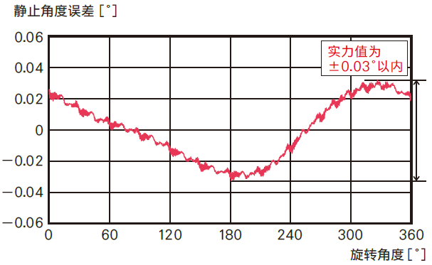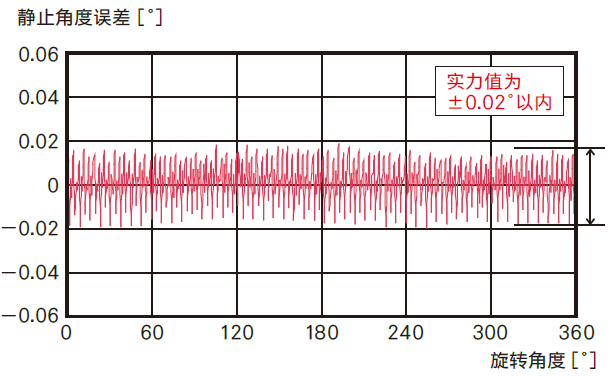 下面是αSTEP AZ系列整步运行是的静止角度误差实测值。可见停止精度为±0.02°的高精度定位。