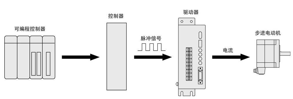 下图为脉冲型驱动器驱动步进电动机时的系统构成示例。