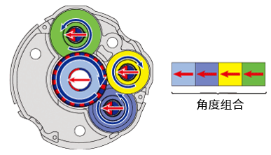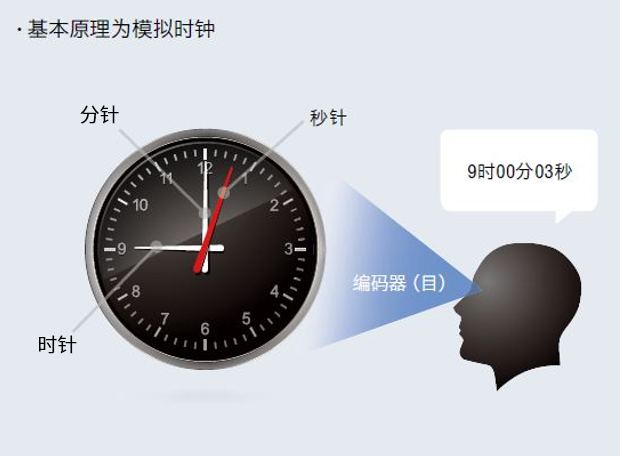 模拟时钟根据秒针、分针、时针的位置测定当前时间。ABZO编码器相当于搭载了4个相当于时钟时针的齿轮,通过识别这4个齿轮的角度来检测位置信息。
