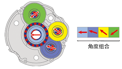 利用齿数比产生的相位差,以齿为单位检测出齿轮相位,并根据相位的组合可算出多次旋转后的坐标。