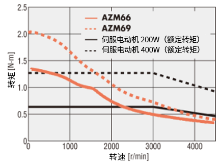 AZ系列在中、低速度领域的转矩更高,适合短距离的定位运转。