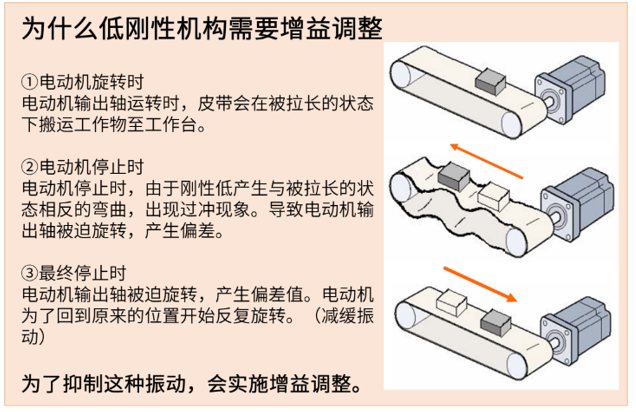 而伺服电动机因为是闭环控制,必须对应负载的状态做增益调整。近年伺服电动机的自动增益功能,可以进行自动的增益调整。