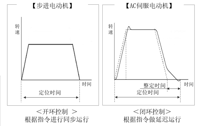 伺服电动机则需要计算编码器的反馈和脉冲指令的差值,并按照这一差值控制电动机旋转,这个过程需要一定的时间。脉冲输入的位置指令和实际的电动机旋转发生延迟,电动机停止时这一时间差就是整定时间。