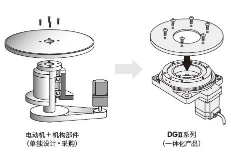 与使用皮带轮等机构零件时相比,可减少机构设计、零件调配、皮带状态调节等的时间与费用。