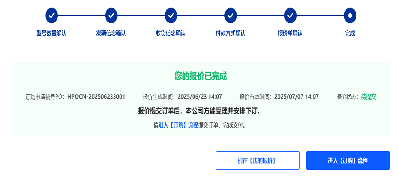 ① 报价完成后,点击“进入【订购】流程”按钮。