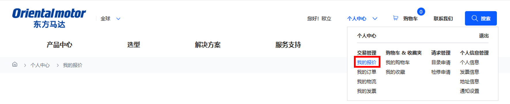 ② 如果已经离开报价完成页面,可以点击页面顶部右侧“个人中心”前往“我的报价” 。