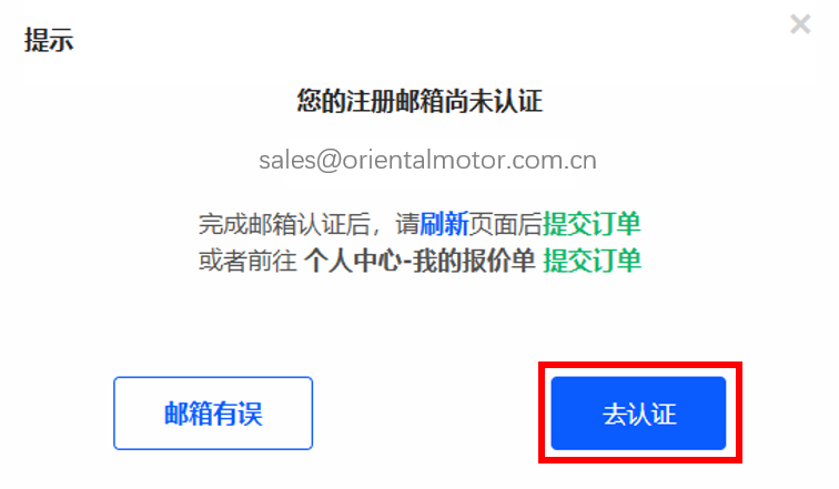 如果您的注册邮箱尚未认证,弹窗后请点击“去认证”按钮,并前往您的邮箱完成认证。