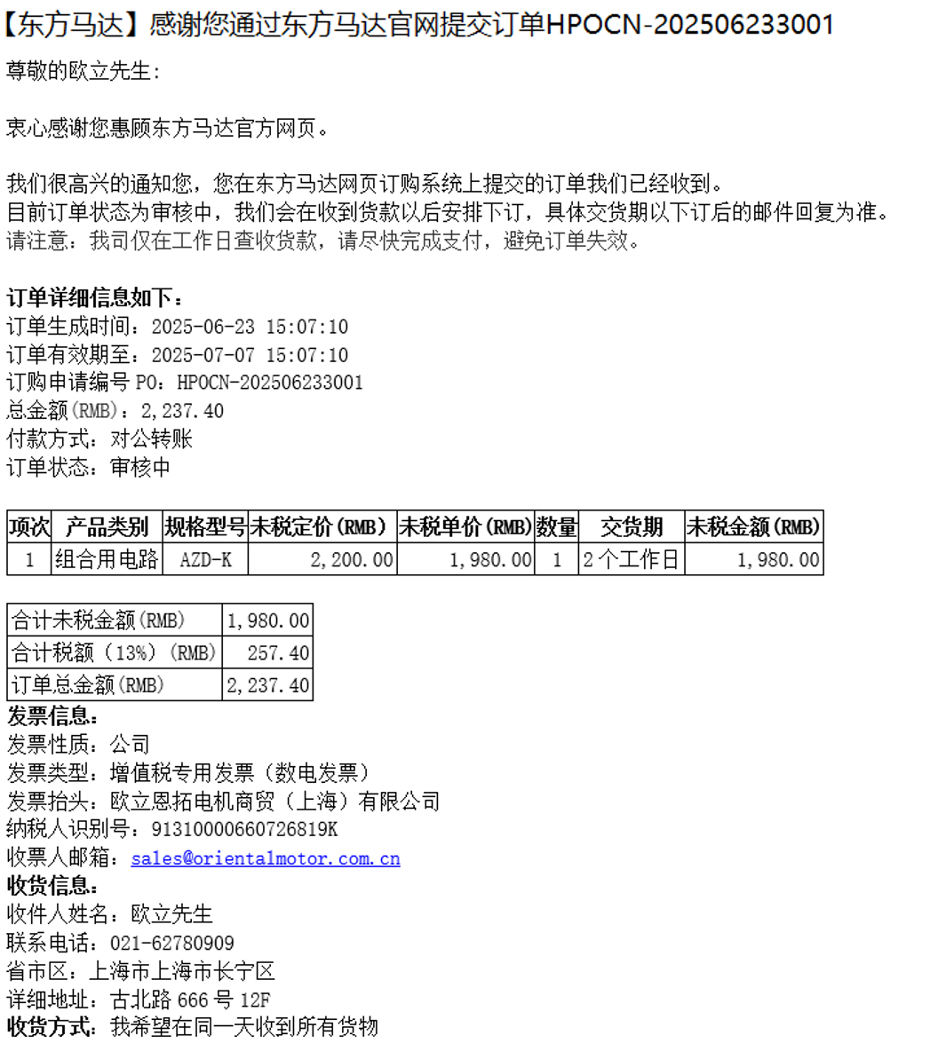 提交成功后订单生成,您的注册邮箱会收到系统自动发送的确认邮件。