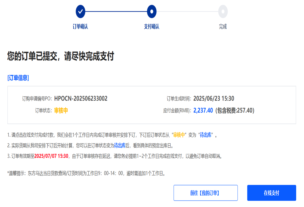 ② 前往“个人中心-我的订单”,找到对应的订单,点击“前往支付”按钮,也可以进行在线支付。