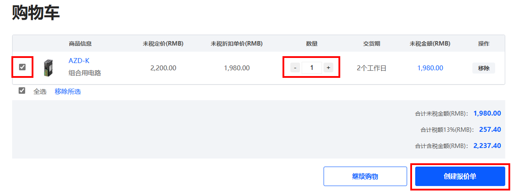 勾选需要的产品,编辑数量,点击“创建报价单”按钮。
