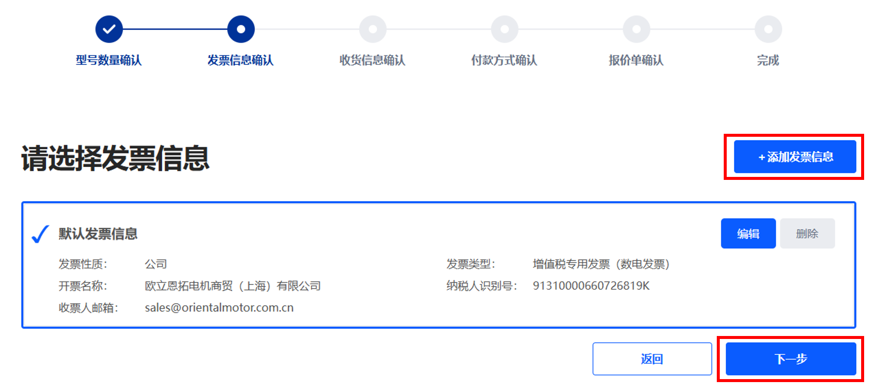 如果列表中没有您需要的发票信息,请通过右上角“+添加发票信息”按钮添加。