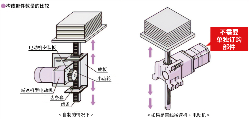 与自制齿条-齿轮机构相比,可以减少使用的部件数量,减少设计和组装的工时。