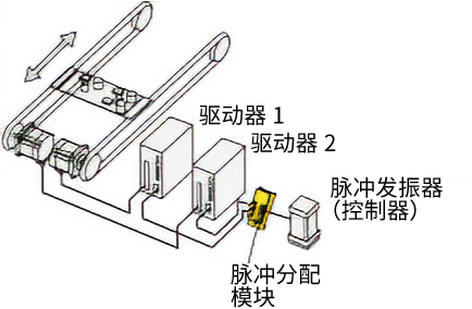 这是一个可以将一个振荡器(控制器)的脉冲信号分配到两个驱动器的模块,以实现同步运行。