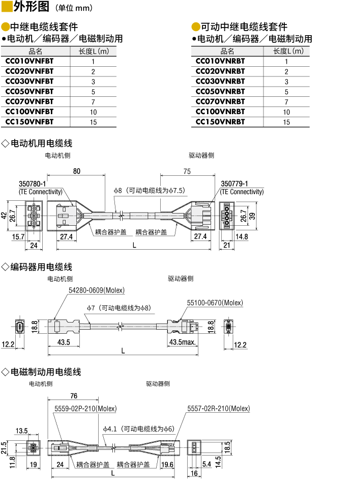 中继电缆线套件带电磁制动电动机用 CC010VNFBT 15个工作日 783.00 705.00