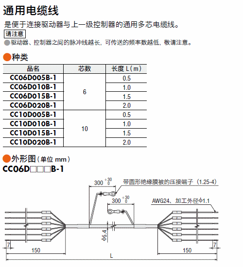 说明 方便连接驱动器或控制器与上位控制器设备的通用多芯电缆。芯数:10芯 长度:0.5 m