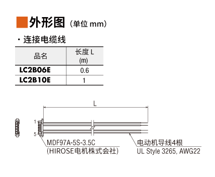 说明 请用于电动机与驱动器间的连接。已压接连接器导线型,长1 m