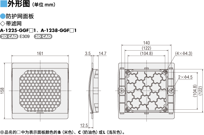 | 说明 | 滤网面板(1片 颜色:奶油色)、铁制防护网(1片)、风扇安装用螺丝、面板安装用螺丝的套件品。 |