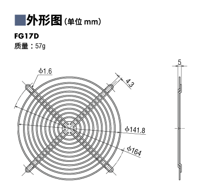 | 说明 | 防护网(2片)与安装用螺丝的套件品。 (适用轴流风扇的尺寸: φ172 mm-厚度度51 mm) |