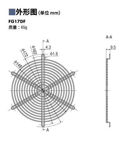 | 说明 | 防护网(2片)与安装用螺丝的套件品。 (适用轴流风扇的尺寸: φ172 mm-厚度度51 mm (边切)) |