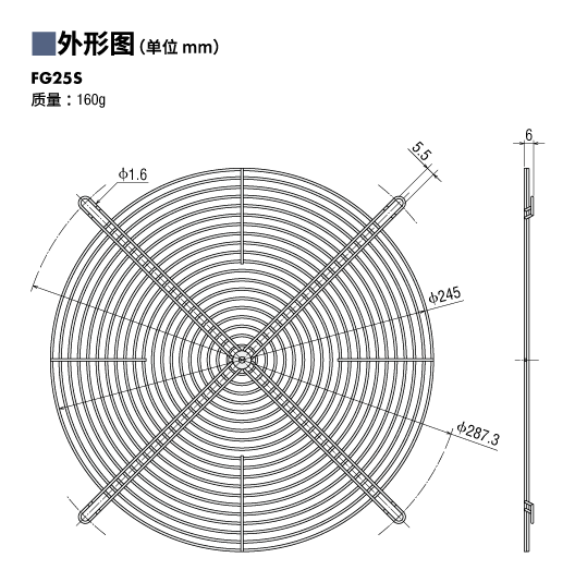 | 说明 | 不锈钢制防护网(2片)和安装用螺丝的套件品。 (适用轴流风扇的尺寸: □250 mm) |