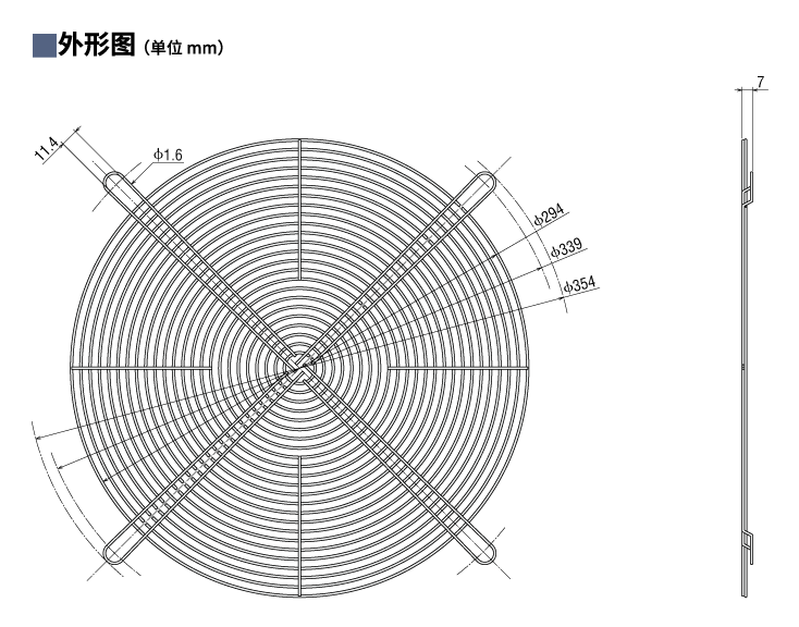| 说明 | 防护网(1片)与安装用螺丝的套件品。 (适用轴流风扇的尺寸: □300 mm) |