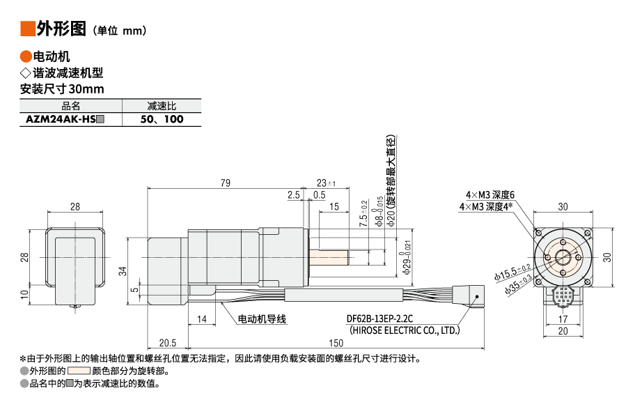 | FC减速机型 | 35mm | AZM24 | 7.2、15、25 | 80 | 120 | 180 | 230 | - | 80 |