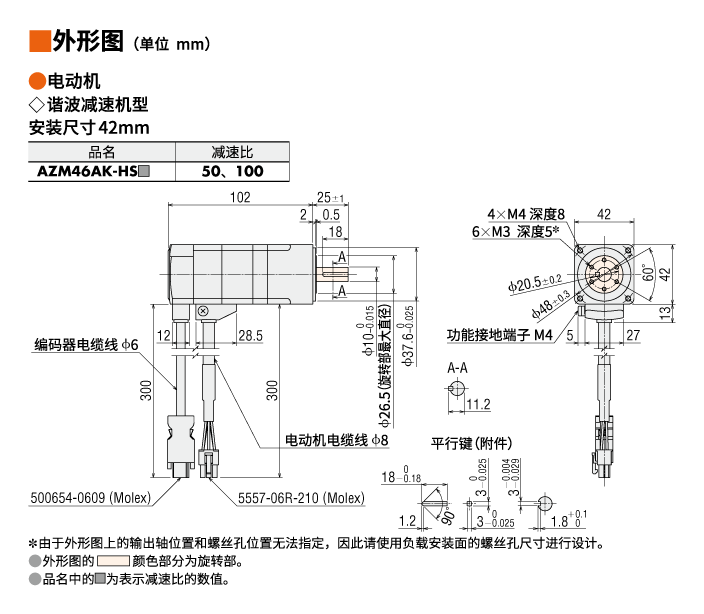 | TS减速机型 | 42mm | AZM46 | 3.6、7.2、10 | 20 | 30 | 40 | 50 | - | 15 |