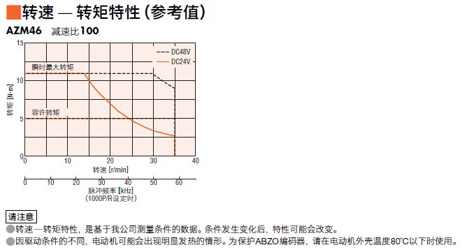 AZM14、AZM15、AZM24、AZM26:±450转(900转) AZM46、AZM48、AZM66、AZM69:±900转(1800转) |