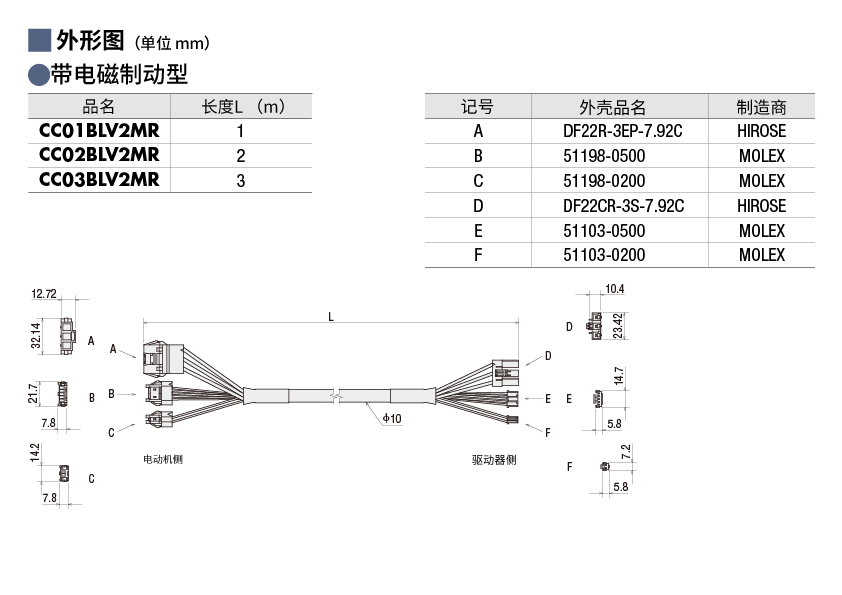 说明 带电磁制动型用 1 m