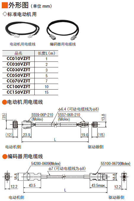 | 说明 | 电动机与电缆线间中继时必需的电缆线。长度2 m |