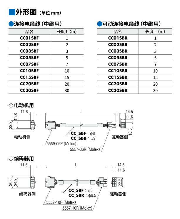 电动机与驱动器间的连接电缆线。套件包括电动机用电缆线和编码器用电缆线。 2 m