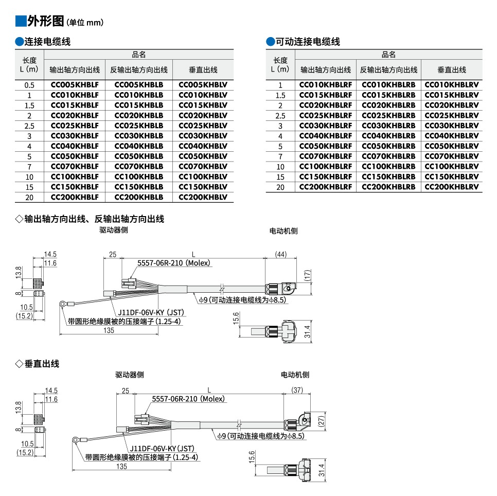 | 说明 | 可动连接电缆线 反输出轴方向出线 长度5 m 请于电缆线需反复弯曲时使用。 |