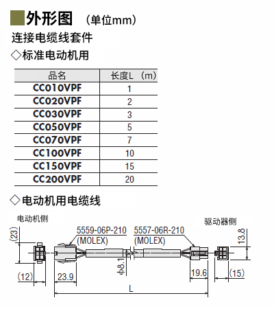 | 说明 | 电动机与驱动器间连接,或电动机与电缆线间中继时必需的电动机用电缆线。长度5 m |