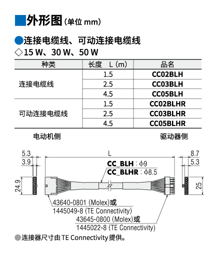 | 说明 | 电动机与驱动器间的延长用电缆线(4.5 m)。最长延长距离为5m。 |