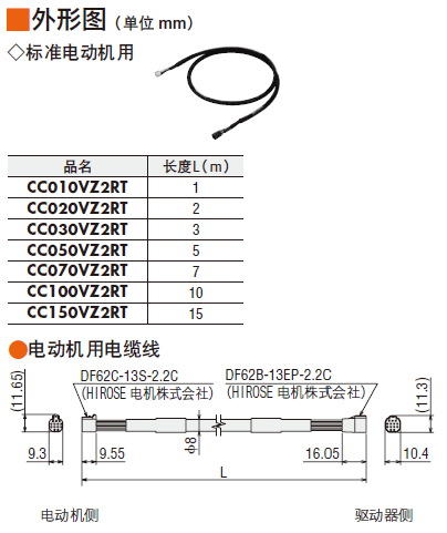| 说明 | 电动机与电缆线间的可动电缆线。请于电动机安装在可动部,电缆线需弯曲时使用。长度7 m |