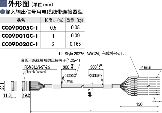 说明 便于连接驱动器与上位控制器的通用多芯电缆线。芯数:9芯 长度:1 m