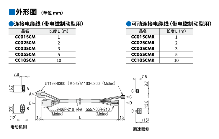 说明 带电磁制动型用 连接电缆线 长度10 m