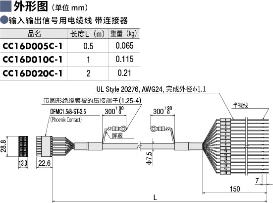 说明 便于连接驱动器与上位控制器的通用多芯电缆线。芯数:16芯 长度:2 m