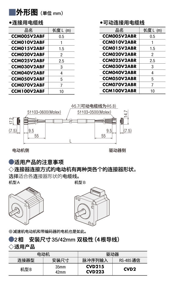 | 说明 | 连接器连接方式电动机与驱动器直接连接用的电缆线。两端带连接器,长1 m |