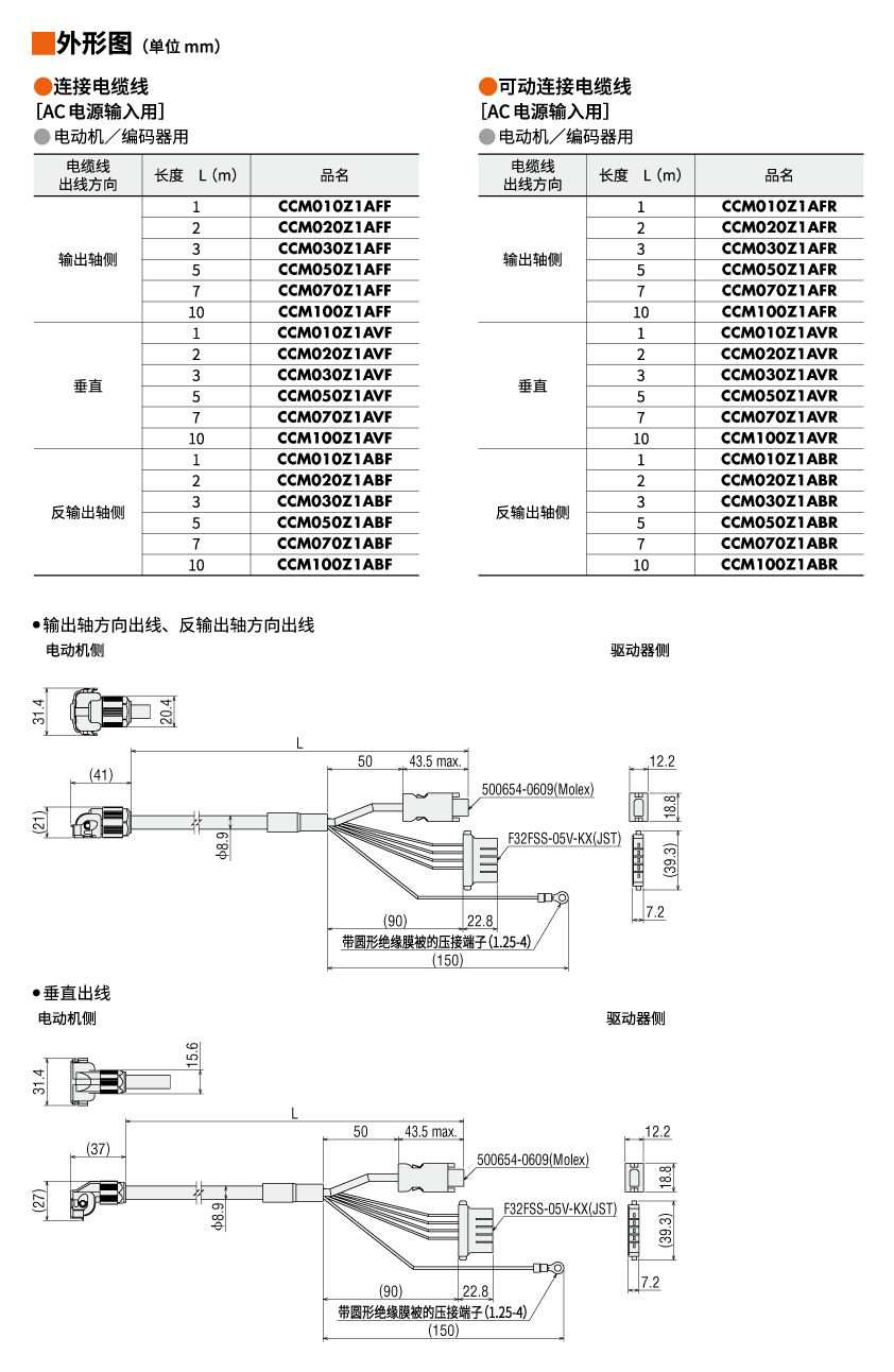 | 说明 | 可动连接电缆线 反输出轴方向出线 长度2 m 请于电缆线需反复弯曲时使用。 |