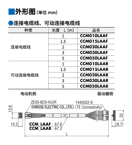 | 说明 | 连接器型电动机与驱动器直接连接用的可动电缆线。两端带连接器,长3 m |