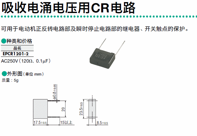 | 吸收电涌电压用CR电路 | EPCR1201-2 | 14个工作日 | 33.00 | 30.00 | |