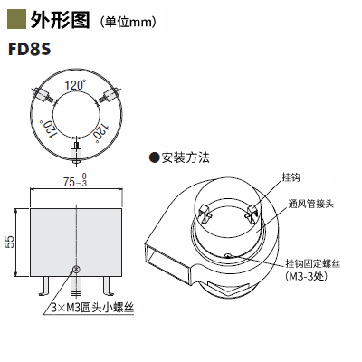 | 说明 | 材质:SPCC (管部)、SUS304 (挂钩部) ∗ 不能与防护网(品名:FGB8)及滤网(品名:FLB8)并用。 |