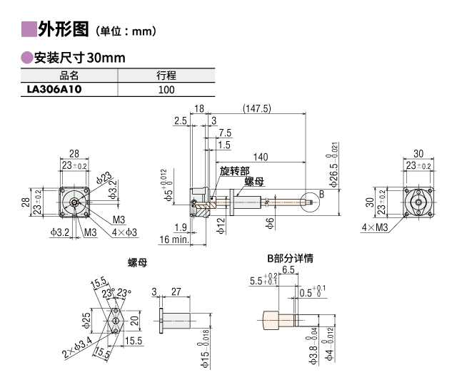 • 丝杠带适配器: 电动机输出轴安装螺丝、电动机組付螺丝