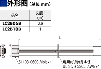 说明 请用于电动机与驱动器间的连接。已压接连接器导线型,长0.6 m
