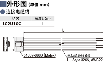 说明 请用于电动机与驱动器间的连接。已压接连接器导线型,长1 m