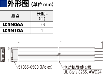 说明 请用于电动机与驱动器间的连接。已压接连接器导线型,长1 m