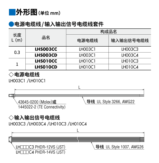 | 电源/输入输出信号电缆线 | LHS003CC | 2个工作日 | 54.00 | 49.00 | |