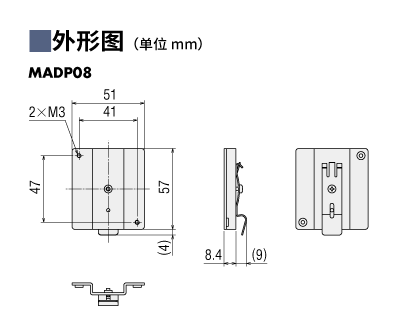 | 说明 | 可以将AZ系列 mini驱动器(AZD-KR2D)安装在DIN导轨上的底座。 |